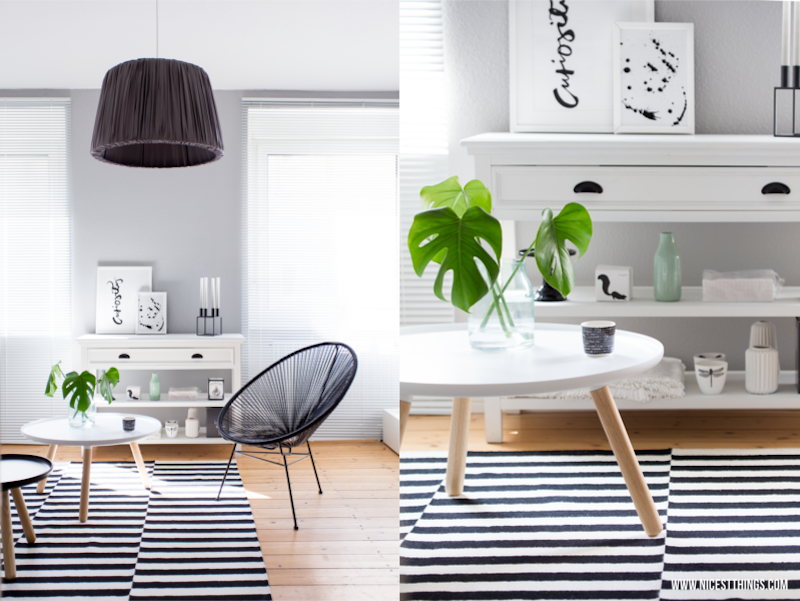 13. Nghe có vẻ như là một nghịch lý khi nói rằng tấm thảm đơn sắc là một mảnh tuyệt vời cho một phòng khách ấm cúng. Nhưng nếu nhìn vào phòng khách này, bạn sẽ thấy rõ ràng là một tấm thảm kẻ sọc đen trắng đã làm được điều này.