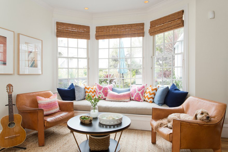 3. Với không gian cạnh khung cửa sổ, đã được đặt sẵn ghế nghỉ ở khung cửa, bạn có thể đặt thêm ghế đơn với chất liệu da màu nâu để không gian thêm đẹp mắt.