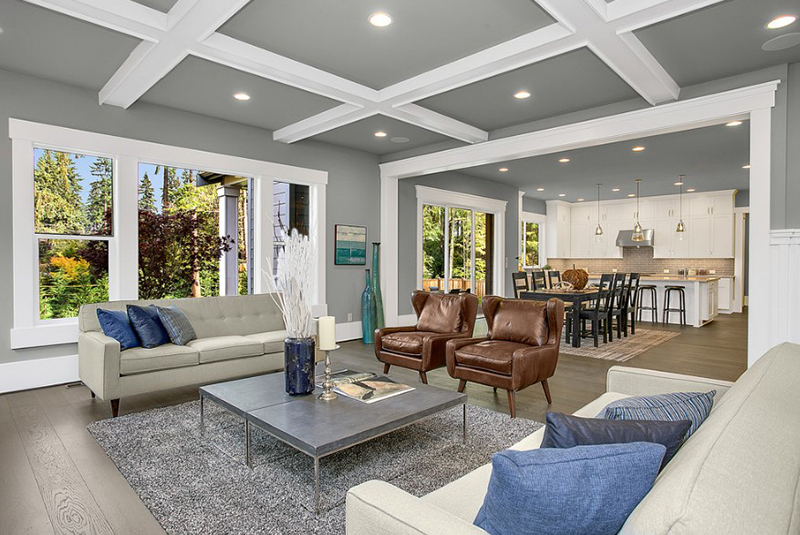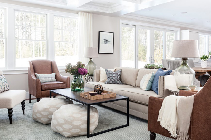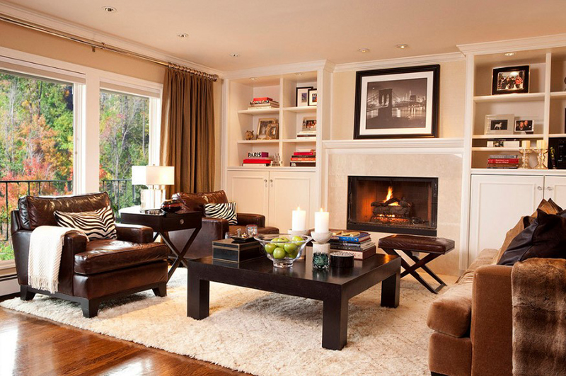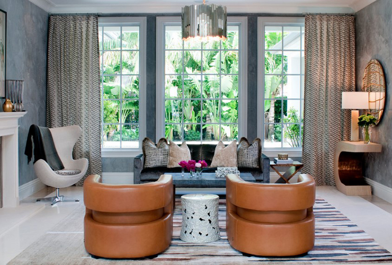 1. Nếu phòng khách đã có sẵn bộ sofa màu xám, bạn cũng có thể thêm một vài chiếc ghế đơn bằng da màu nâu đặt cạnh cửa sổ. Chúng sẽ mang đến vẻ đẹp sang trọng và không kém phần ấm cúng.