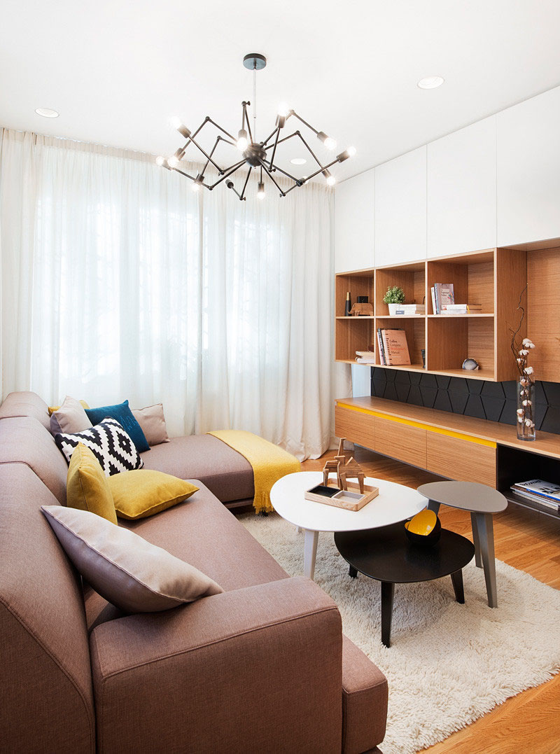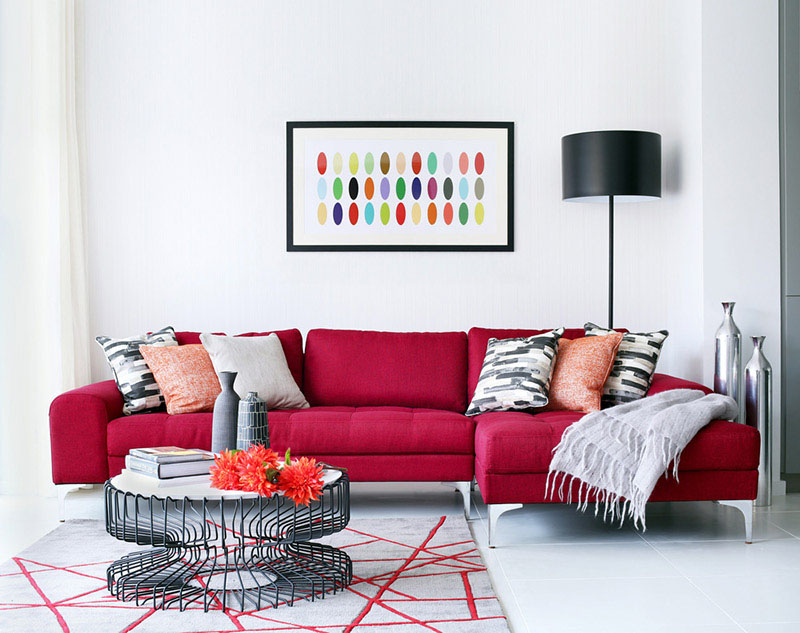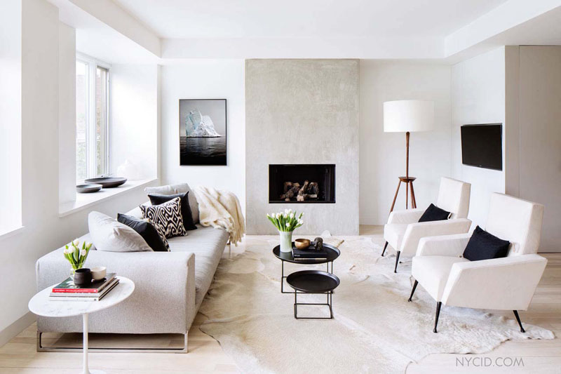 Nhứng bức tường trắng, sàn gỗ sáng màu là lựa chọn tuyệt vời nhất cho một căn phòng khách chật chội. Những nếu chúng khiến bạn cảm thấy không gian có phần lạnh lẽo thì hãy khéo léo thêm một vài màu sắc rực rỡ bên trong căn phòng với những món đồ như lọ hoa, tranh ảnh, gối ôm,…