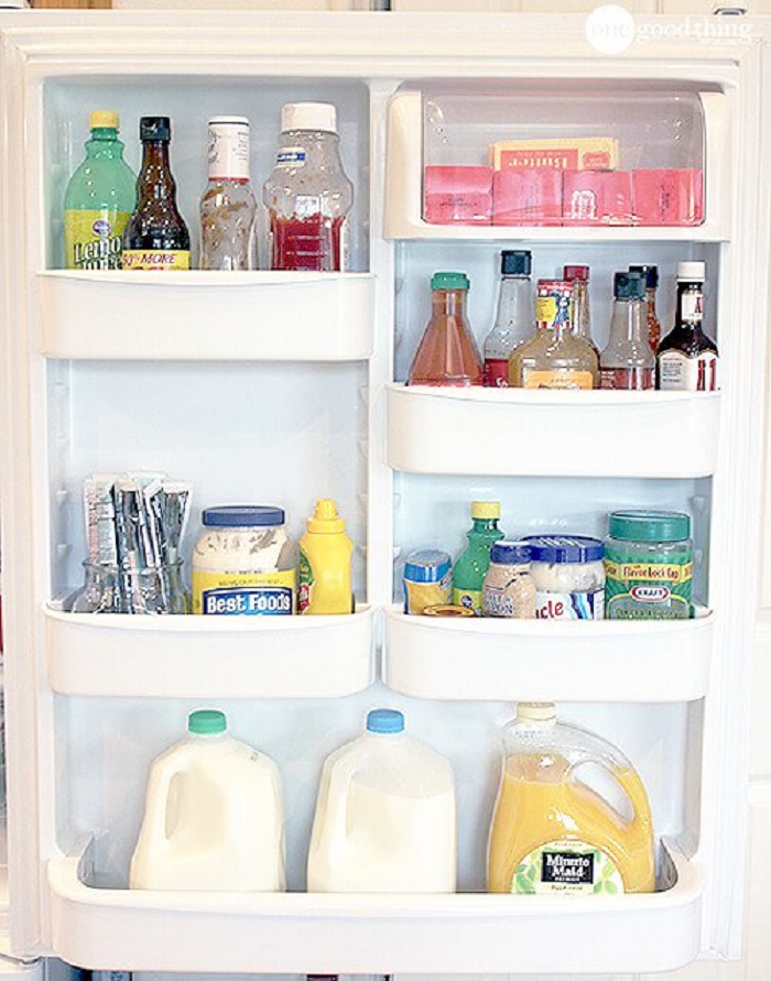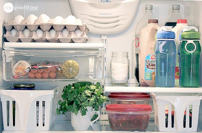 Trứng là thực phẩm cần để lên cao để tiếp xúc với nhiệt độ lạnh của tủ giúp bảo quản được lâu hơn. Nên bạn cần xếp trứng lên ngăn đầu tiên của tủ lạnh nhé. Các chai gia vị thì nên sắp xếp ở cửa tủ để dễ lấy và quan sát hơn.